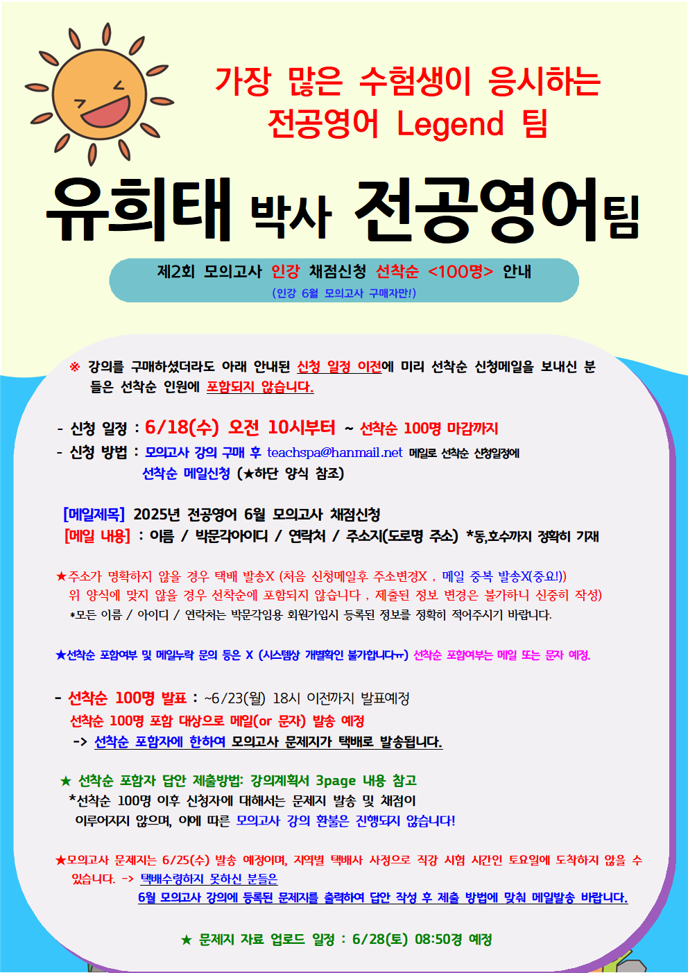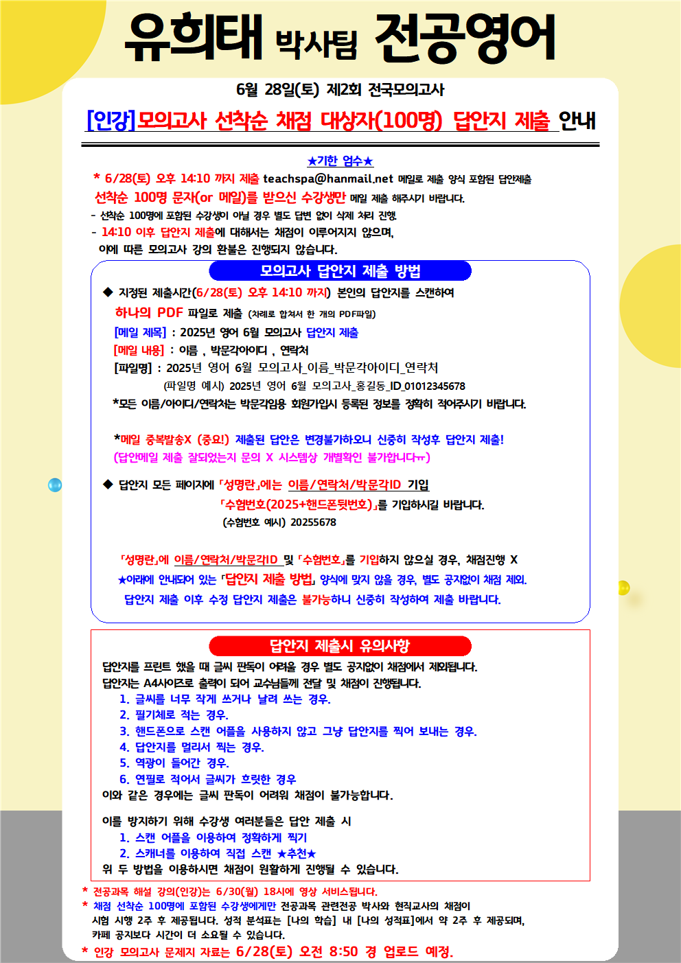 (인강) [유희태박사팀 전공영어] 제2회 6월 전국모의고사 안내 작성자박문각임용온라인|작성시간25.06.11|조회수1,579 목록 댓글 9 글자크기 작게가 글자크기 크게가 다음검색 현재 게시글 추가 기능 열기 북마크 공유하기 신고 센터로 신고 댓글 댓글 9 댓글쓰기 답글쓰기 댓글 리스트 해당 댓글은 작성자와 운영진만 볼 수 있습니다. 해당 댓글은 작성자와 운영진만 볼 수 있습니다. 해당 댓글은 작성자와 운영진만 볼 수 있습니다. 해당 댓글은 작성자와 운영진만 볼 수 있습니다. 해당 댓글은 작성자와 운영진만 볼 수 있습니다. 댓글 전체보기