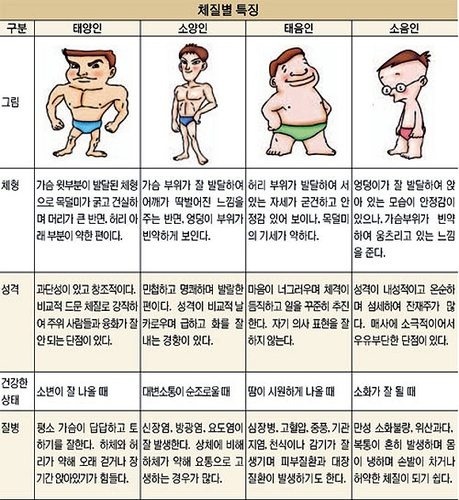 사상체질 자가진단 / 사상체질 테스트 / 사상체질별 특징