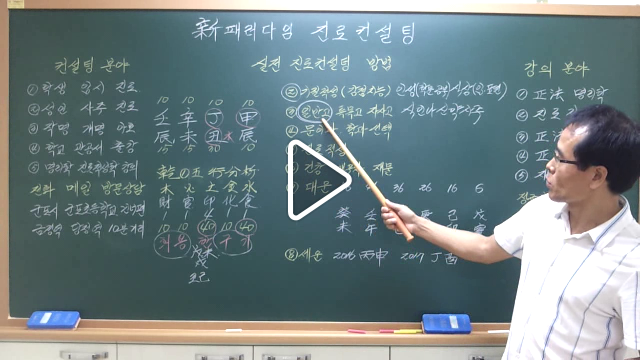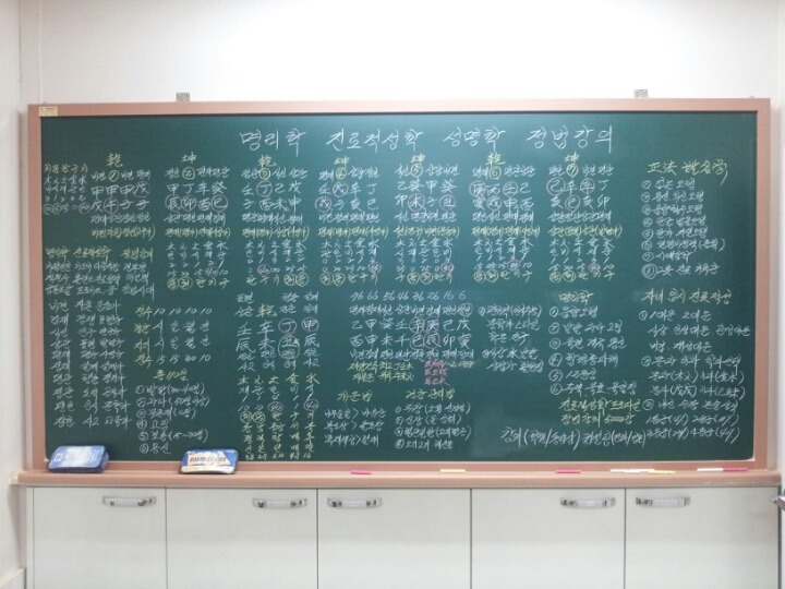 ○명리학 중급반 1주.육신의 개요 2주.육신의 기질 3주.육신의 관계론 4주.육신의 통변론 5주.십이신살 원리 6주.왕상휴수사론 7주.비견 겁재 분석 8주.식신 상관 분석 9주.편재 정재 분석 10주.편관 정관 분석 11주.편인 정인 분석 12주.쌍둥이 사주 연구 ○ 명리학 고급반 1주.용신의 원리 2주.억부용신 3주.조후용신 4주.통관용신 5주.병약용신 6주.격국용신 7주.황제내경 기법 8주.초씨역림 기법 9주.자평진전 관법 10주.적천수 관법 11주.궁통보감 관법 12주.우주변화의 원리 ○ 명리학 전문반 1주.명리학 핵심 기법 2주.명리학 실전 적용 3주.명리학 실전 통변 4주.진로학 핵심 기법 5주.진로학 실전 적용 6주.진로학 실전 통변 7주.실전 인물 분석 8주.즉문즉설 사주풀이 9주.즉문즉설 사주풀이 10주.즉문즉설 사주풀이 11주.즉문즉설 사주풀이 12주.즉문즉설 사주풀이 ○ 성명학 1주.기존 성명학 설명 2주.新패러다임 성명학 3주.음양오행 상생상극 4주.사상 8괘 64괘 5주.81영동수리 원형이정격 6주.훈민정음 혜례본 원리 7주.한글 발음,한자 자원오행 8주.용신 희신 불용문자 9주.주역 육효 소리 성명학 10주.아호 짓기 실전 11주.이름 짓기 실전 12주.상호 짓기 실전 ○진로적성학 1주.다중지능이론 연구 2주.유전자와 기질적성 3주.진로직업 타입 분석법 4주.조직직장형,자영업형,프리랜서형 5주.강점지능에 따른 진로적성 6주.개인별 성적향상 학습전략 7주.문과 이과 선택 방법 8주.수시모집 대학 학과 지원전략 9주.정시모집 대학 학과 지원전략 10주.직업 적성 트라이앵글 분석 11주.진로적성 실전연습 12주.진로적성 실전연습 ○주역 육효학 1주.역(易)의 기원 2주.태극 음양 사상 팔괘 3주.효(爻)의 명칭과 판단 4주.득괘법 공망론 5주.합충론 팔신론 동효론 6주.용신론 호괘론 육수론 7주.상수학 의리학 8주.소성괘 대성괘 9주.점(占) 철학 심리학 10주.공자 주역 연구 11주.종합평가 실습 12주.종합평가 실습 ○풍수학 1주.풍수지리학 개요 2주.경복궁 청와대 풍수론 3주.용(龍)과 혈(血) 4주.풍수용어 이해 5주.간룡법 연구 6주.동기감응설 7주.관산론 형상론 8주.패철론 천광법 9주.양택풍수 연구 10주.음택풍수 연구 11주.풍수 답사(도시) 12주.풍수 답사(농촌)