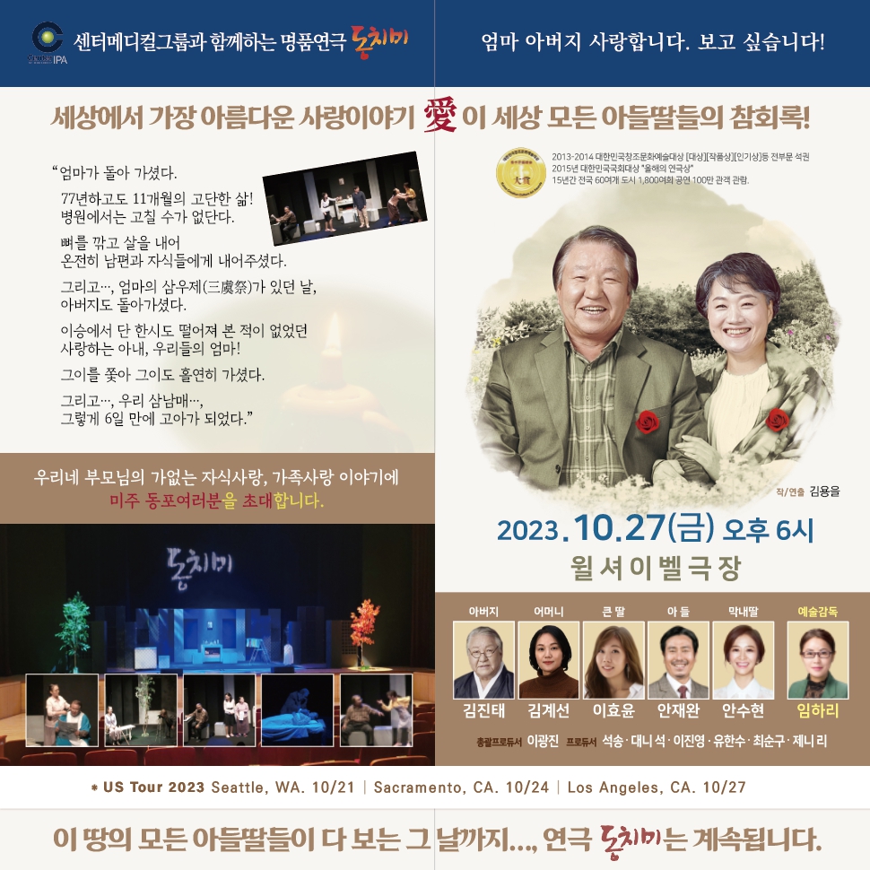 명품 가족연극 '동치미' 2023 1차- 미주 서부지역 3개 도시 투어 작성자Globian66|작성시간23.08.31|조회수85 목록 댓글 0 글자크기 작게가 글자크기 크게가 다음검색 현재 게시글 추가 기능 열기 북마크 공유하기 신고 센터로 신고 댓글 댓글 0 댓글쓰기 답글쓰기 댓글 리스트