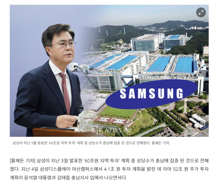 좌측 상단쪽 삼성디스플레이시티 1.2 약 150만평 규모