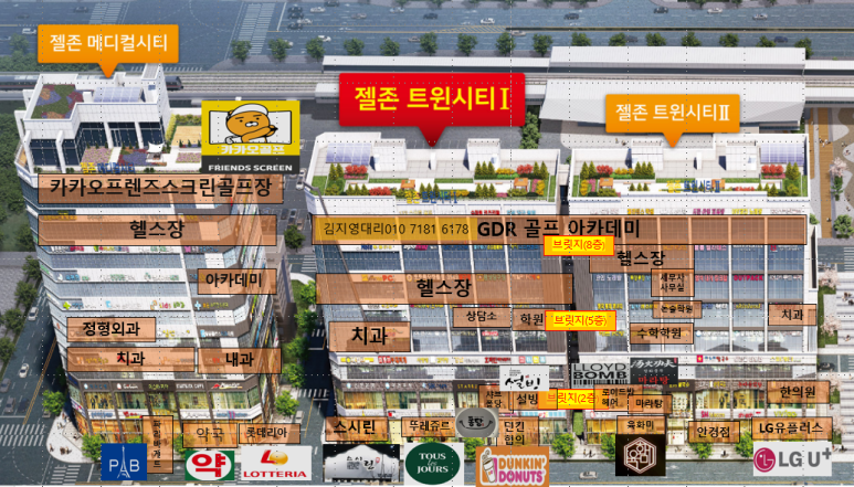 상층부 ; 치과,내과,정형외과, 전층 카카오프렌즈 스크린골피,대형헬스장,아카데미 입점확정