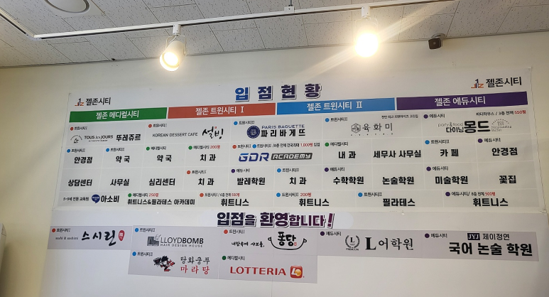 입점현황: 스시린,LG유플러스,뚜레쥬르,설빙,샤브샤브퐁당,