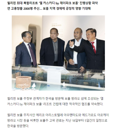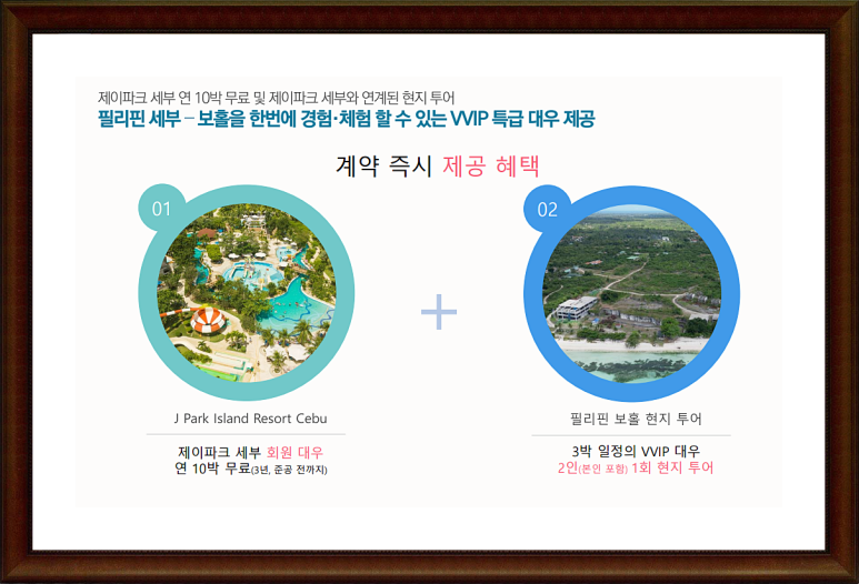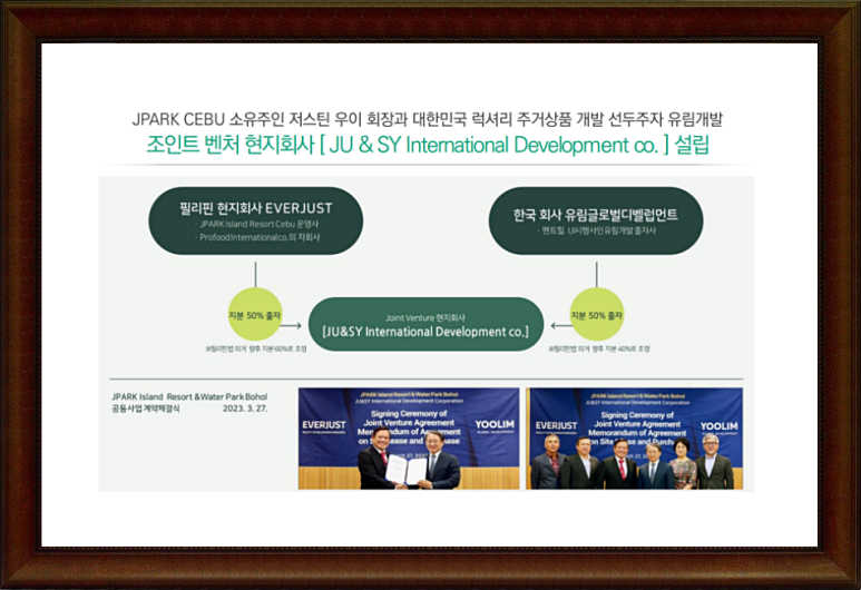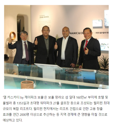 필리핀 제이파크 아일랜드 리조트 성공을 이끈 저스틴우이 회장님과의 합동사업 으로 진행되며 제이파크 아일랜드 리조트의