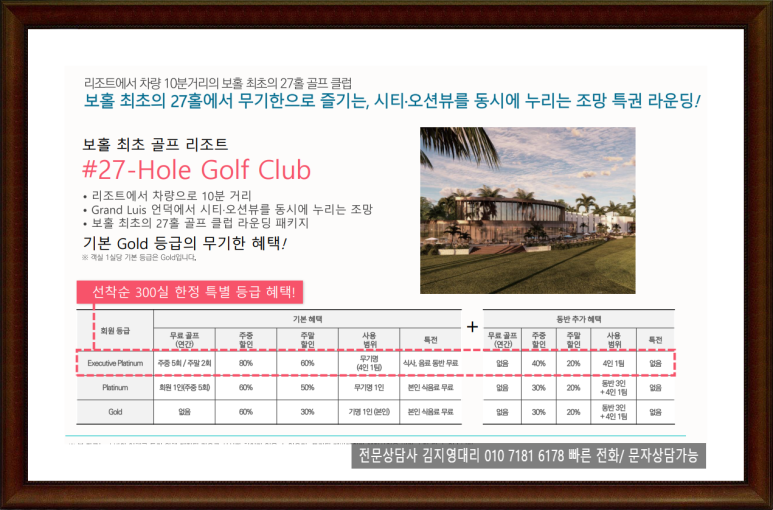 특권 27~35만평에 달하는 부지에 보홀 섬 최초로 27홀 규모 완비를