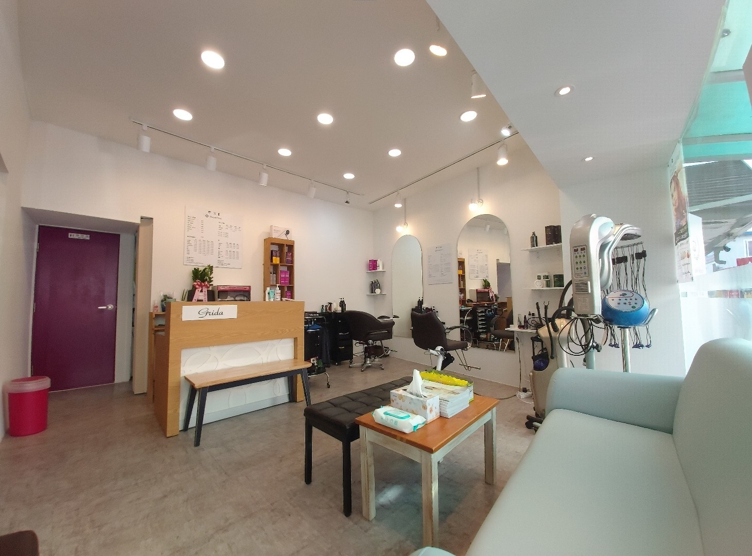 미용실과 반영구 샵을 같이 운영하여 안쪽 공간이 분리 되어 있습니다. 화장실도 실내에 있습니다.