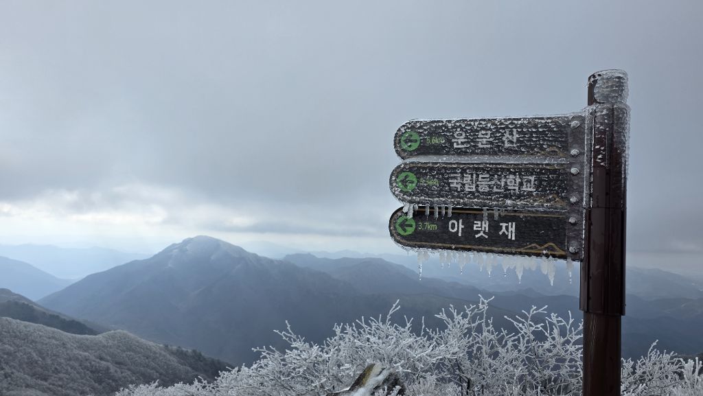 전날 내린 비로 모처럼 영알에 눈꽃과 상고대가 너무 아름답게 반겨 주었고, 여전히 가지산 바람은 겨울을 잡아 두고 있었습니다.