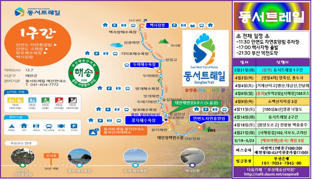 한반도를 횡단하는 길, 태안 안면도 자연휴양림에서 울진 금강소나무길 까지 연결 된 849km의 여정의 길을 열어 본다.