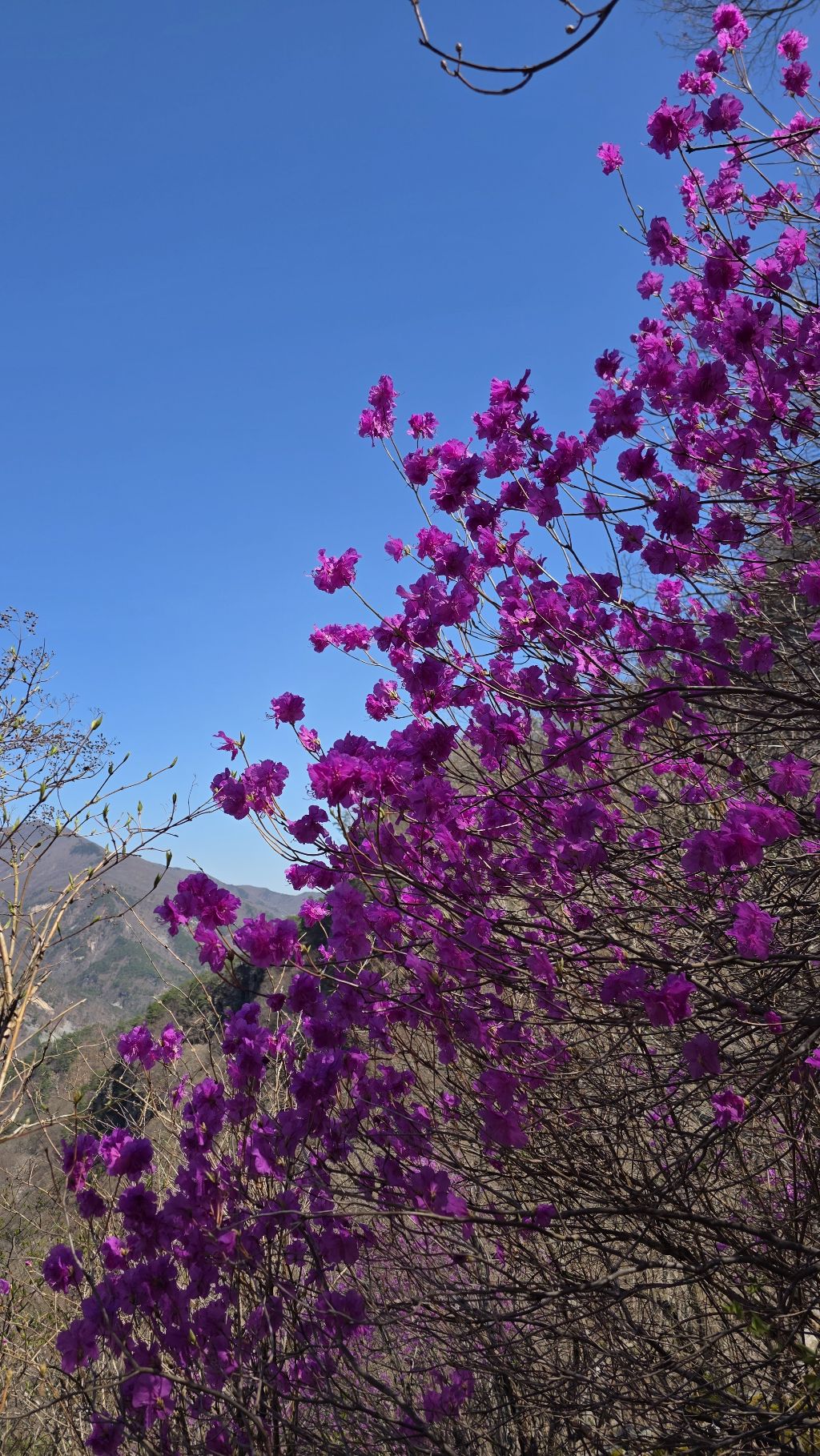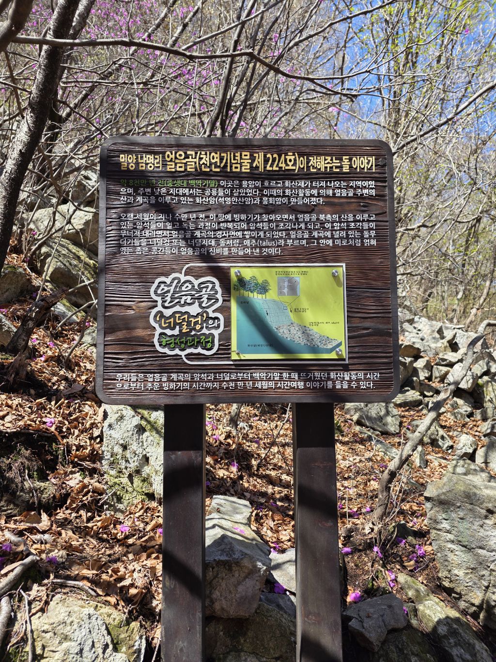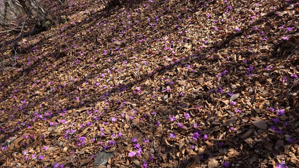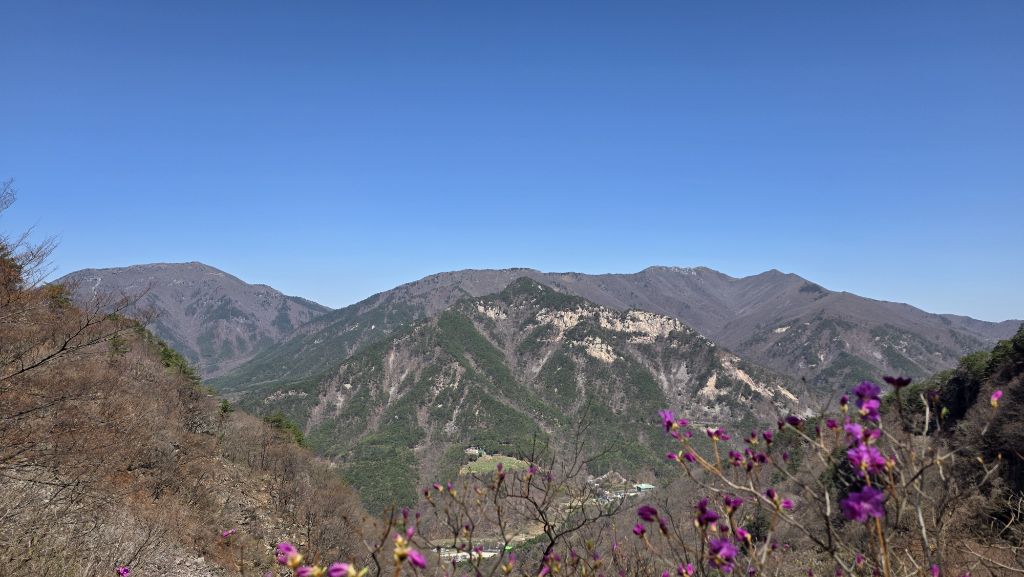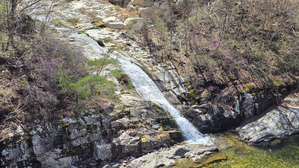 길도 험하고 아직 겨울도 남아 있지만 동의굴을 지나 얼음골 너덜겅에는 진달래가 봄을 맞이 하고 있다.
