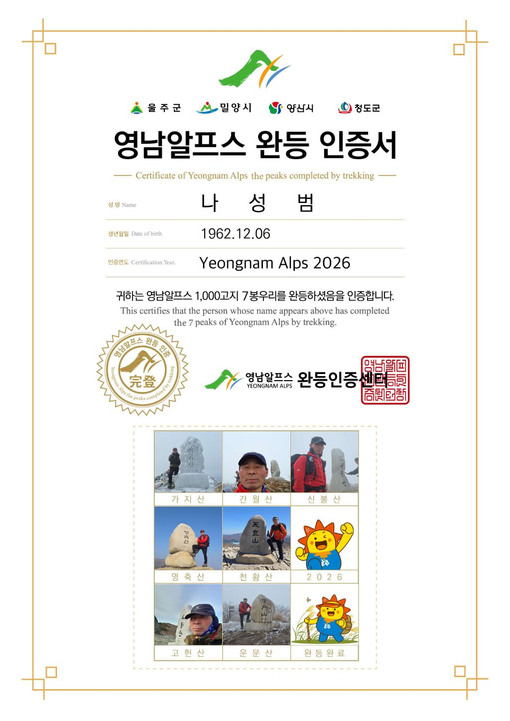 울산시 울주군의 영남 알프스 7봉 이벤트 산행을 천황산으로 마무리 한다.