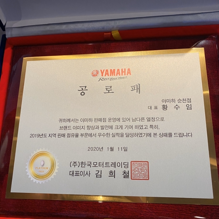 야마하 지역 우수 판매상 저희가 받았습니다~~~👏👏👏
