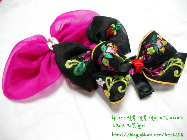 어때요? 낡은 한복이지만 이렇게 리본핀으로 만들어 놓으니