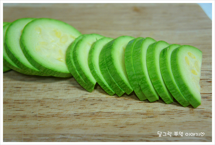 호박은 도톰하게 반달 썰어서 소금을 약간 뿌린 다음