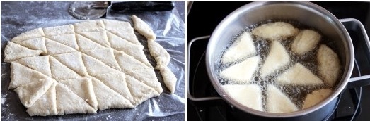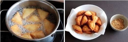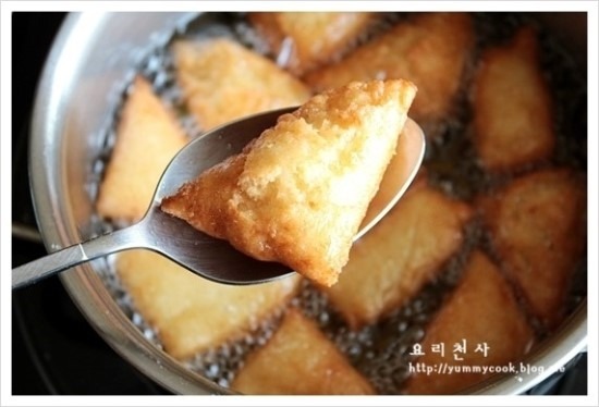 반죽을 떼어 넣고 노릇하게 튀겨낸다