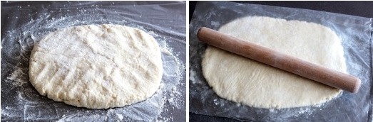 밀가루를 뿌려 준 후 손으로 어느정도 펼쳐 준 후