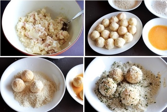 섞어진 감자를 직경 2~2.5cm정도로 동글 동글하게 빚어서