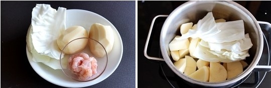 감자 2~3개, 양배추 1잎, 새우살 50g,