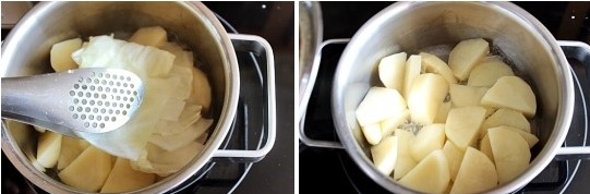 포실하게 잘 익은 감자는 꺼내어 후추 약간, 우유, 버터를 넣는다