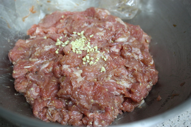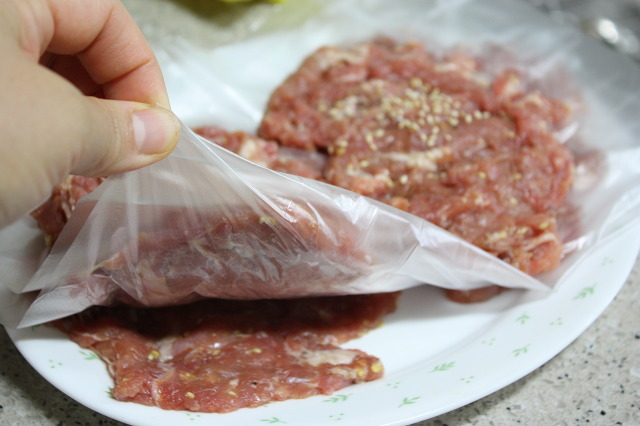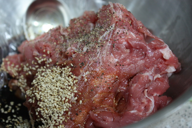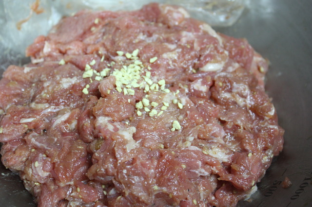 돼지고기 핏물제거해서 모든 양념 다 넣고 치대시면 됩니다.