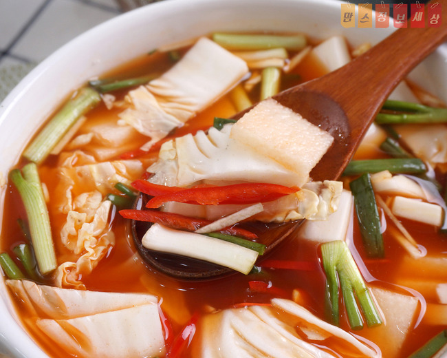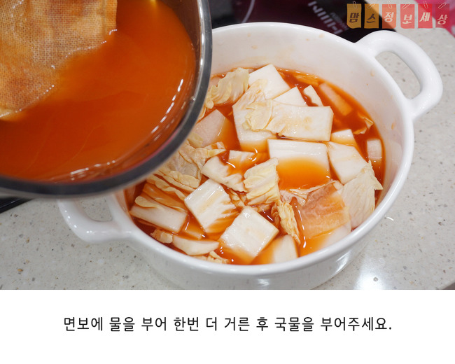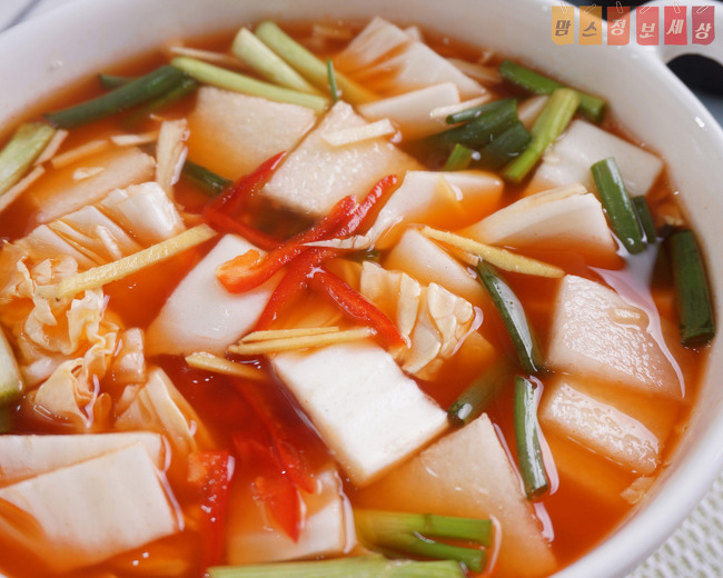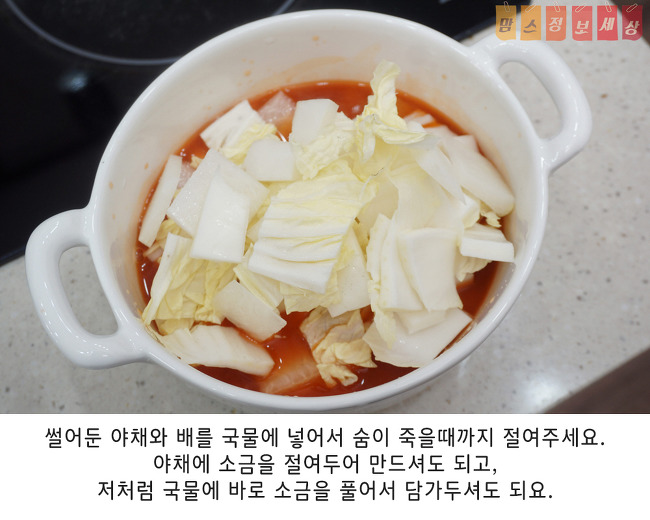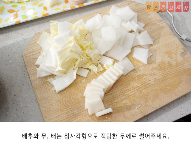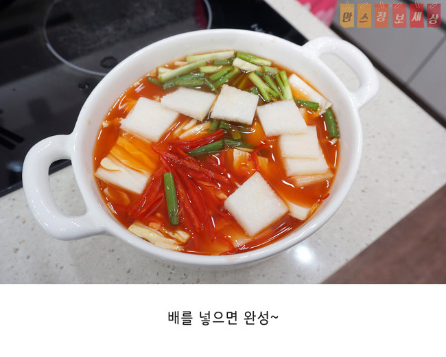 아삭아삭 씹을수록 나오는 배즙이 국물에 더해져 더욱 맛깔스러워요.