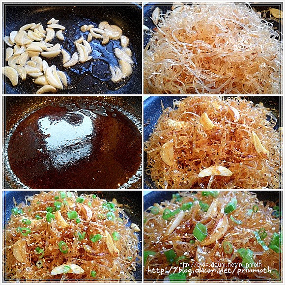 바글하고 끓기 시작하면 볶아두었던 실채를 넣고 잘 섞어 주세요~