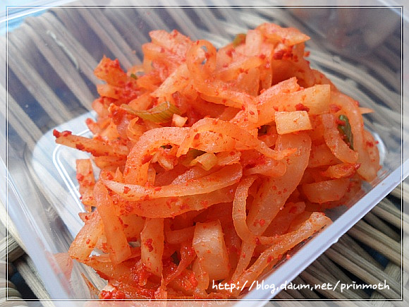 아삭하고 간이 쏙 배여 있는 동치미 무우로 무친지라~~아삭함이 하늘을 찔러요~~
