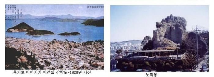 육로로 이어지기전 삼학도 (1928년) 와 노적봉의 모습