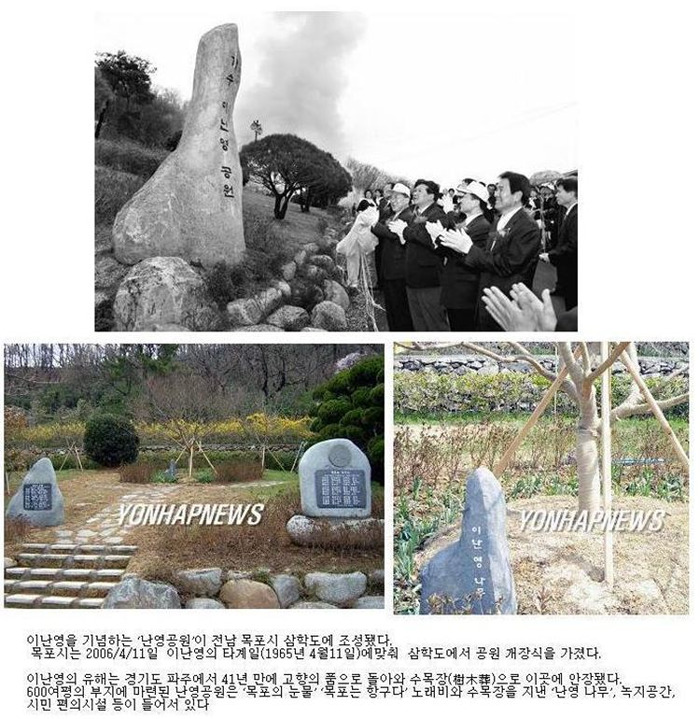 경기도 파주에서 목포 삼학도에 조성된 ‘가수 이난영 공원’으로 이장되었다