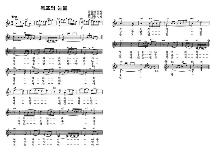 〈목포의 눈물〉은 일제 강점기인 1935년 이난영이 처음 부른 뒤 오랫동안 애창되고 있는 한국의 트로트곡이다,