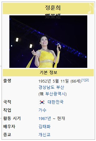 가수 정훈희는 1952년생으로 올해 나이는 68세이며 방학을 맞아 밴드마스터인 삼촌을 따라 서울에 올라가 한 호텔 클럽에서 노래를 불렀다고 하는데요. 그대 우연히 작곡가 이봉조씨가 정훈의의 노래를 들어 '안개'라는 곡을 가수로 데뷔하게 되었다고 합니다이후 정훈희는 국제가요제에서 6회나 입상한 최고의 디바로 불렸으며  1970년 도쿄 국제가요제에서 세계적인 그룹 아바를 제치고 가수상을 받기도 했습니다