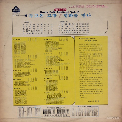 [네이버 지식백과] Oasis Folk Festival Vol. 2 - 이수미 / 4월과 5월 / 이수만 (가요앨범 리뷰, 한국대중가요연구소)