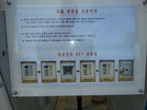 락카를 사용안하면 옷과 귀중품은 어떻게 할것인가..? 귀중품은 입구에서 맡기시구요, 지갑도 워터파크에서 쓸 돈은 미리 넉넉히 충전하신후 맡기면 되겠죠? 파크내에 보관함이 있더라구요. 락카룸에서 옷만 갈아입고 나머지 물품은 이렇게 보관을...