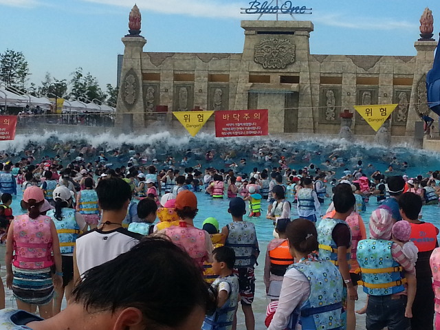 블루원이 자랑하는 국내 최대 규모의 파도풀장입니다.
