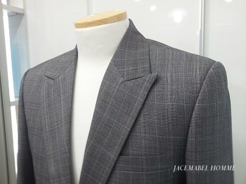 글렌체크 피크드라펠 1버튼 슈트입니다.