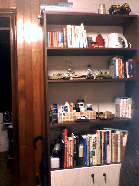 그래서 먼지 잘 닦고 다시 제 방 책장으로 모셔왔습니다. (책장위에 예전 운동할때 신던 싸이클화도 다시 찾았네요^^;)