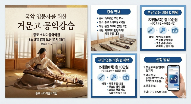 ### 거문고 공익강습 상세 안내 (종로점)