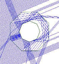 굴절형 팔각형 : 속이 빈 내부 팔각형 구조와 팔각형을 형성하는 평평한 표면의 일련의 과정. 이 모델은 평행 광선이 특정한 각도로 입력됨을 가정합니다. 빠져 나가는 광선은 팔각형의 표면에서 굴절 및 내부 전반사 (TIR)에 의해 형성된다.