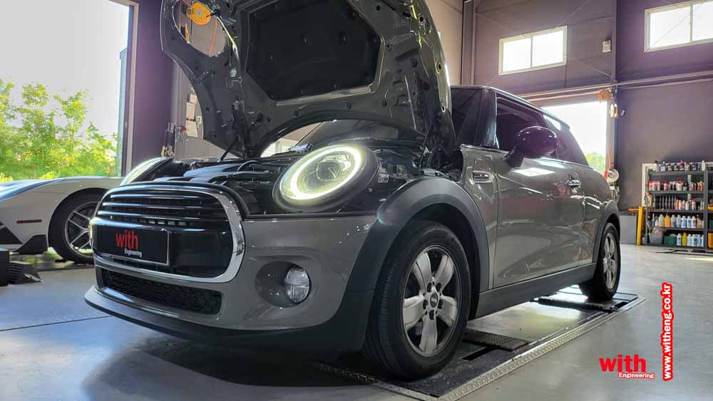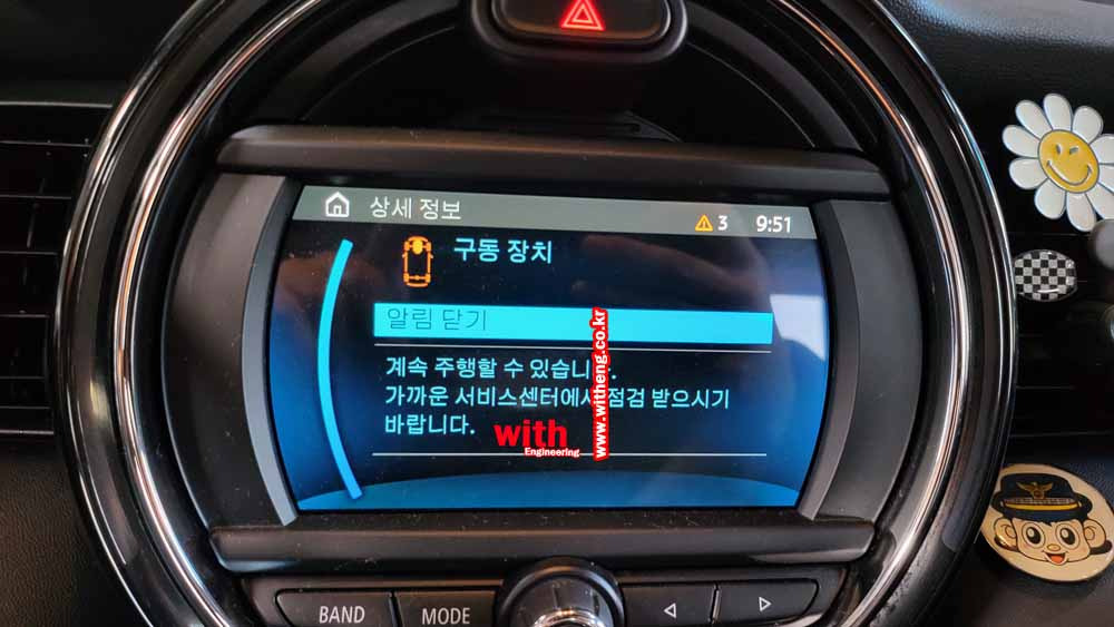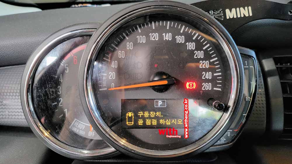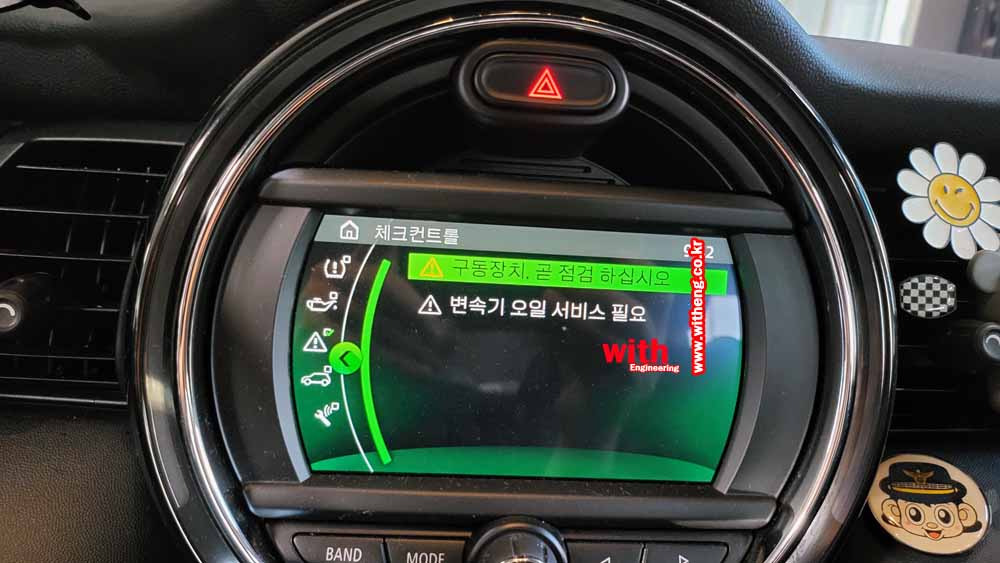 F56 미니 쿠퍼 D B37 구동장치 곧 점검하십시오 서비스 알림으로 변속기 오일 서비스 기간으로 인해 모튤 DCT 미션오일 교환합니다.