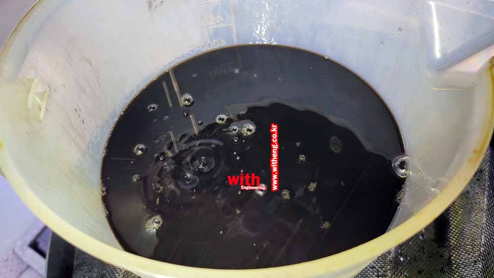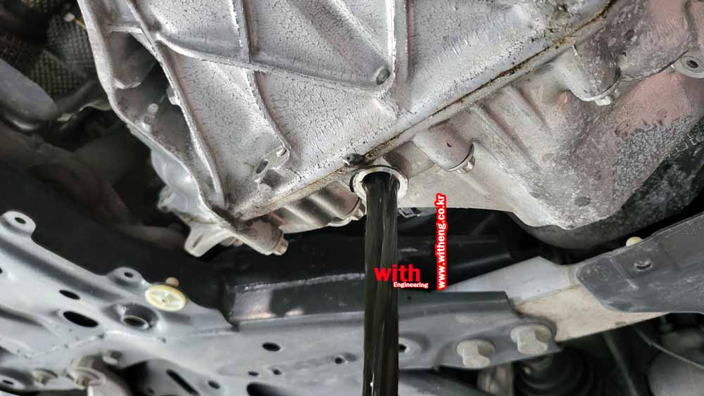 DCT 미션오일 배출하는 중입니다.미션오일 색깔이 아주 나쁜 상태입니다.