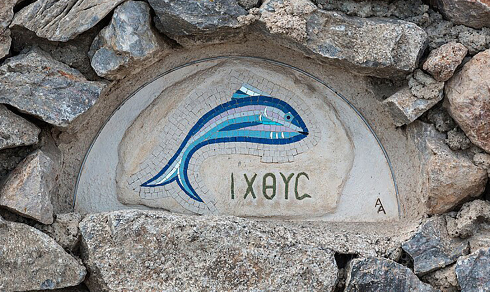 물고기는 로마 박해 시대에 신자들이 서로를 알아보던 암호로 ‘그리스도’를 가리켰습니다. 그리스어로 ‘예수 그리스도 하느님의 아들 구세주’의 어절 첫 글자를 따로 모으면 물고기(ⅠΧΘΥΣ)라는 단어가 됩니다.