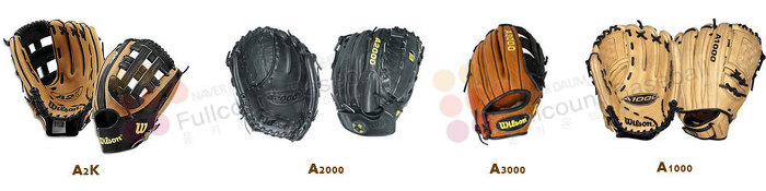 A2000 - 윌슨 두 번 째 등급 글러브(작년까지 최고였음)로 역시 최고급 가죽을 사용했으며, 사회인야구에서 가장 선호하 는 메이커라고 할 수 있음.