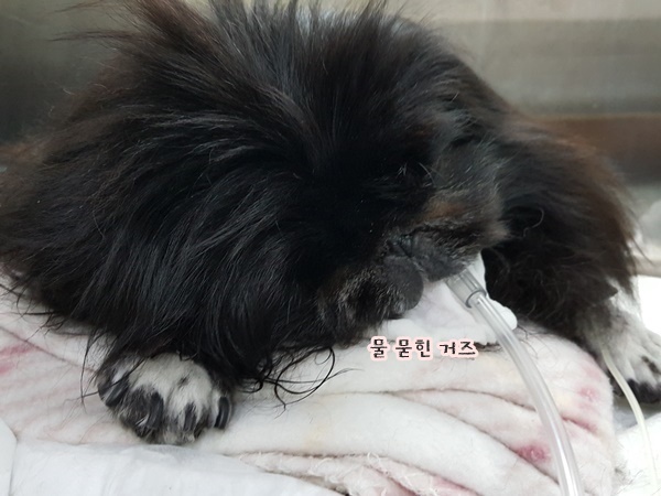 수술후 산소케이지에 들어간 깜돌이는 너무 힘들게 숨을 헉헉,,,대는