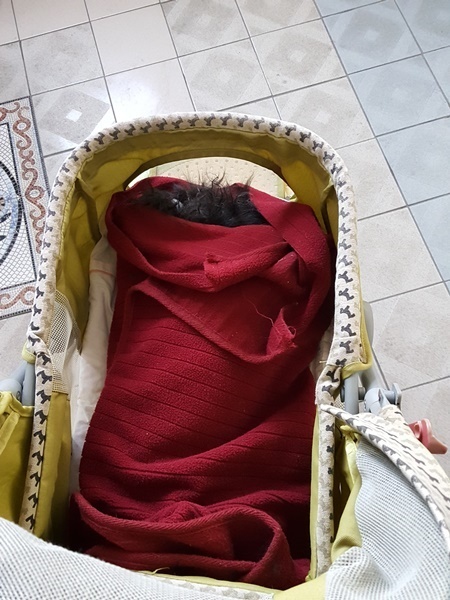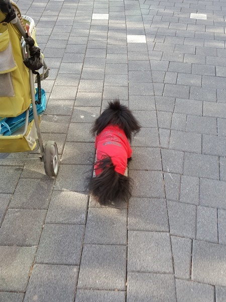 마지막으로 깜돌이를 유모차에 태워 데리고 갔습니다