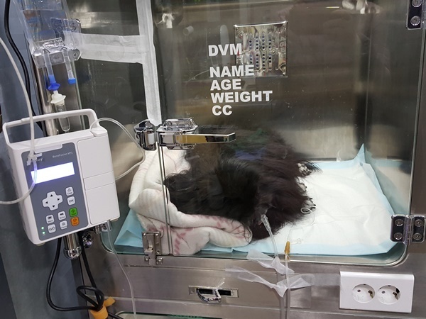 그리고 깜돌이는 산소케이지에 들어갔습니다