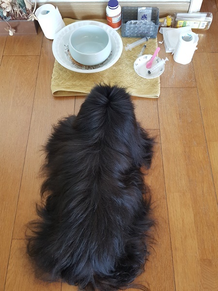 어떻게든 결석 없애보려 하루 세번 그 쓴약을 먹이느라...순딩이 깜돌이는 한번도 거부하지않고