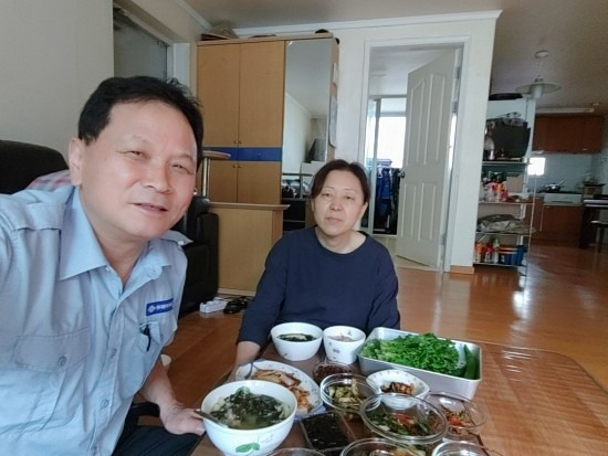 * 평소 근무날의 식사를 집으로 와서 하는데 아내와 둘이서 먹는 모습이다.