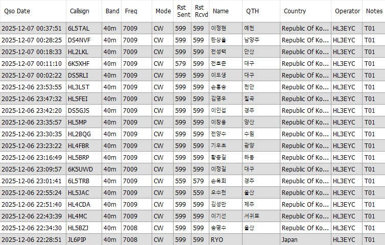 [제467회/251207] 일요 우리글 교신 결과 (HL3EYC, T01) 작성자DSØAHQ|작성시간25.12.07|조회수13 목록 댓글 1 글자크기 작게가 글자크기 크게가 KDNT01DS0AHQ_20251207_HL3EYC.adi39.97KBTime : UTC (KST-9) 첨부파일첨부된 파일이 2개 있습니다. jpg 파일 DS0AHQ_20251207_HL3EYC.jpg 다운로드 etc 파일 DS0AHQ_20251207_HL3EYC.adi 다운로드 다음검색 현재 게시글 추가 기능 열기 북마크 신고 센터로 신고 댓글 댓글 1 댓글쓰기 답글쓰기 댓글 리스트 작성자DS3EXT | 작성시간 25.12.08 수고하셨습니다 댓글 전체보기