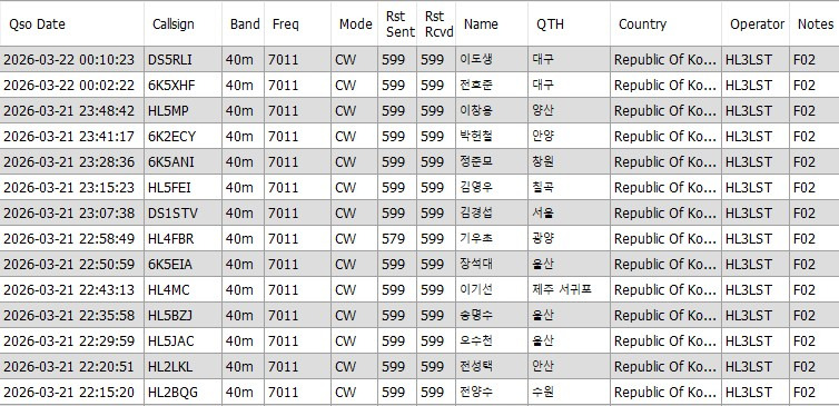 [제482회/260322] 일요 우리글 교신 결과 (HL3LST, F02) 작성자DSØAHQ|작성시간26.03.22|조회수8 목록 댓글 1 글자크기 작게가 글자크기 크게가 KDNF02DS0AHQ_20260322_HL3LST.adi30.10KBTime : UTC (KST-9) 첨부파일첨부된 파일이 2개 있습니다. jpg 파일 DS0AHQ_20260322_HL3LST.jpg 다운로드 etc 파일 DS0AHQ_20260322_HL3LST.adi 다운로드 다음검색 현재 게시글 추가 기능 열기 북마크 신고 센터로 신고 댓글 댓글 1 댓글쓰기 답글쓰기 댓글 리스트 작성자DS3EXT | 작성시간 26.03.27 수고하셨습니다 댓글 전체보기