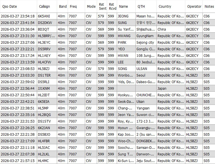 [제614회/260328] 토요 정기 교신 결과 (HL5BZJ, 6K2ECY) 작성자HL2BQG|작성시간26.03.29|조회수13 목록 댓글 1 글자크기 작게가 글자크기 크게가 KDNS05, C06DS0AHQ_20260328_HL5BZJ_6K2ECY.adi51.34KBTime : UTC (KST-9) 첨부파일첨부된 파일이 2개 있습니다. jpg 파일 DS0AHQ_20260328_HL5BZJ_6K2ECY.jpg 다운로드 etc 파일 DS0AHQ_20260328_HL5BZJ_6K2ECY.adi 다운로드 다음검색 현재 게시글 추가 기능 열기 북마크 신고 센터로 신고 댓글 댓글 1 댓글쓰기 답글쓰기 댓글 리스트 작성자DS3EXT | 작성시간 26.03.30 수고하셨습니다 댓글 전체보기