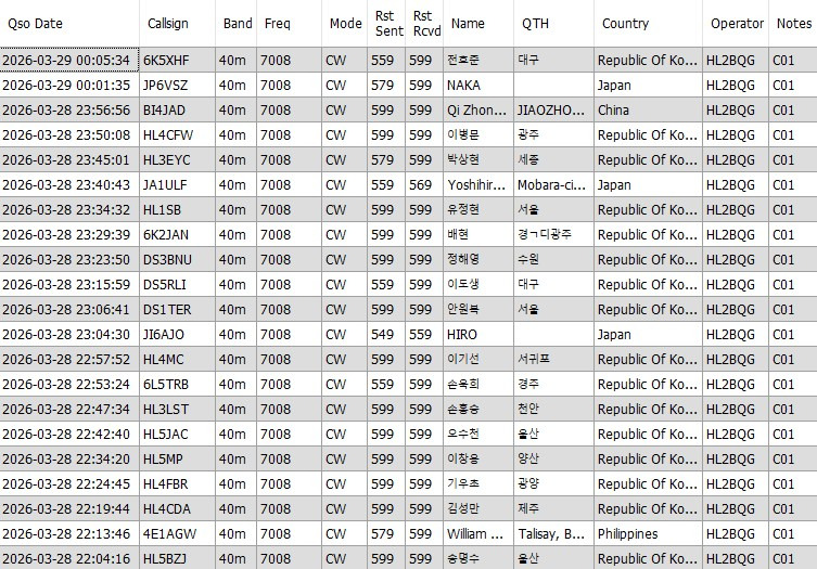 [제483회/260329] 일요 우리글 교신 결과 (HL2BQG) 작성자HL2BQG|작성시간26.03.29|조회수11 목록 댓글 1 글자크기 작게가 글자크기 크게가 KDNC01DS0AHQ_20260329_HL2BQG.adi49.86KBTime : UTC (KST-9) 첨부파일첨부된 파일이 2개 있습니다. jpg 파일 DS0AHQ_20260329_HL2BQG.jpg 다운로드 etc 파일 DS0AHQ_20260329_HL2BQG.adi 다운로드 다음검색 현재 게시글 추가 기능 열기 북마크 신고 센터로 신고 댓글 댓글 1 댓글쓰기 답글쓰기 댓글 리스트 작성자DS3EXT | 작성시간 26.03.30 수고하셨습니다 댓글 전체보기